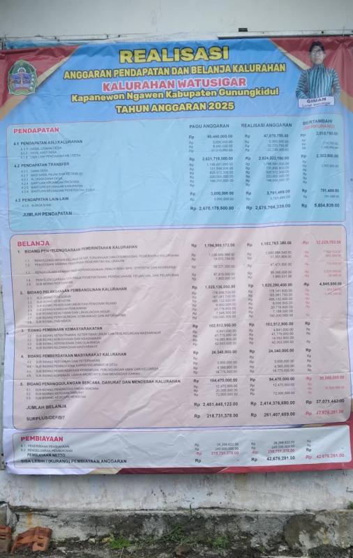 - Lembaran Kalurahan Watusigar Nomor 1 Tahun 2026 tentang Laporan Pertanggungjawaban Realisasi APBKal